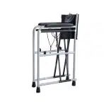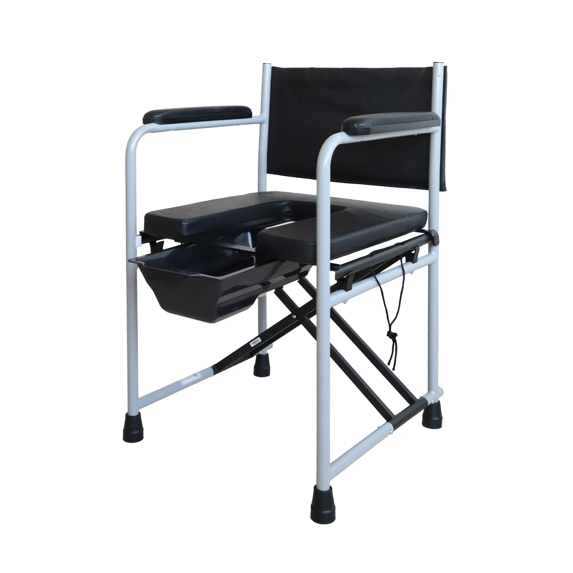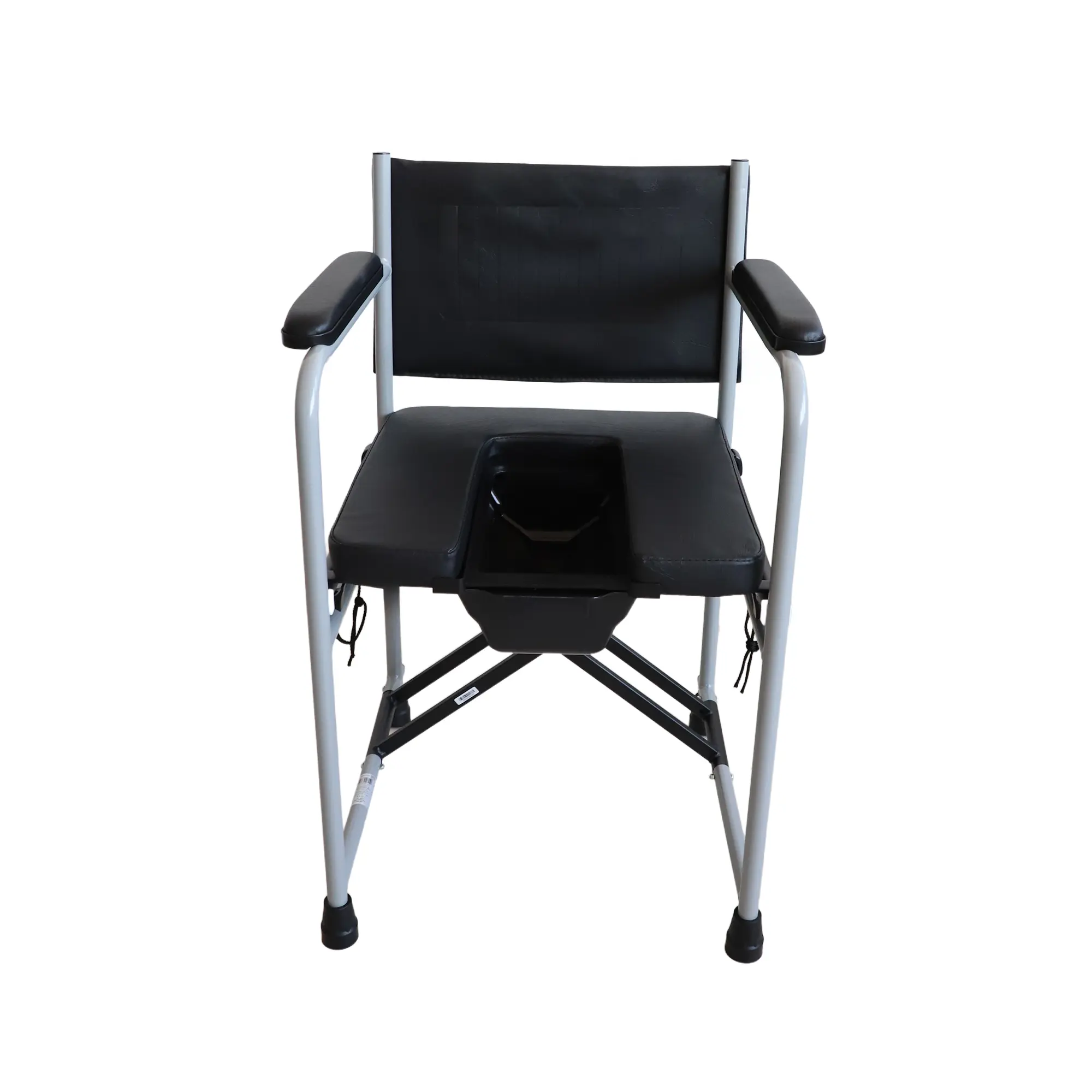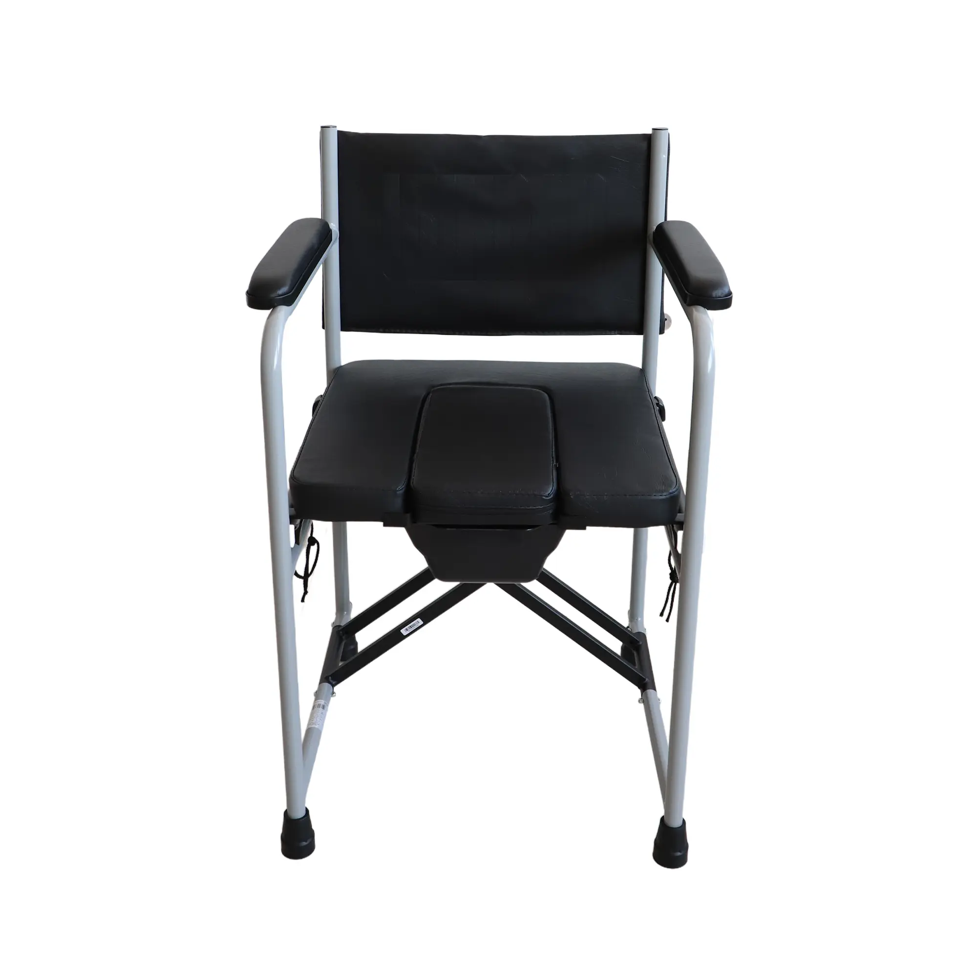A hegesztett acél váz erős, mégis könnyű szerkezetet biztosít, így hosszú távon is stabil tartást ad. A vízhatlan műbőrrel borított, szivaccsal párnázott ülőke, háttámla és kartámasz kényelmes és könnyen tisztítható felületet kínál. A kivehető takaróelemmel ellátott ülőlap alatt található a műanyag gyűjtőedény, amely elölről csúsztatható be, és téglalap alakú fedéllel zárható.