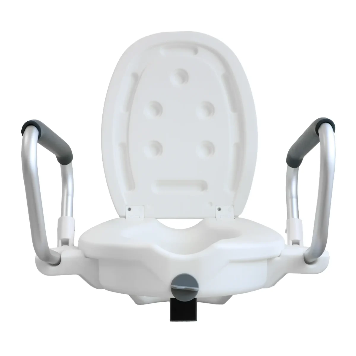 A termék 11 cm-rel emeli meg a WC ülőfelületét, így jelentősen csökkenti a térd és csípőízület terhelését. A felhajtható karfák biztonságos támaszt nyújtanak, miközben kényelmesen elhajthatók, ha nincs rájuk szükség. A karfák puha habszivaccsal borítottak az extra kényelem érdekében.
